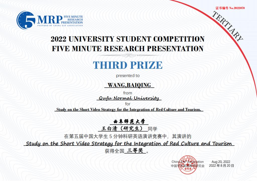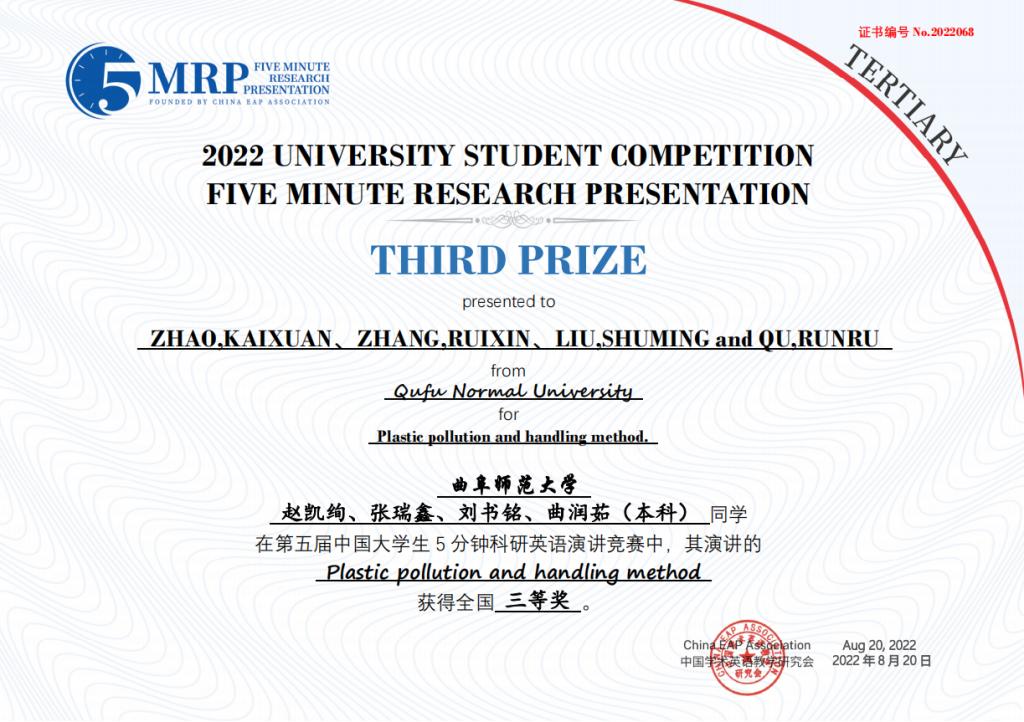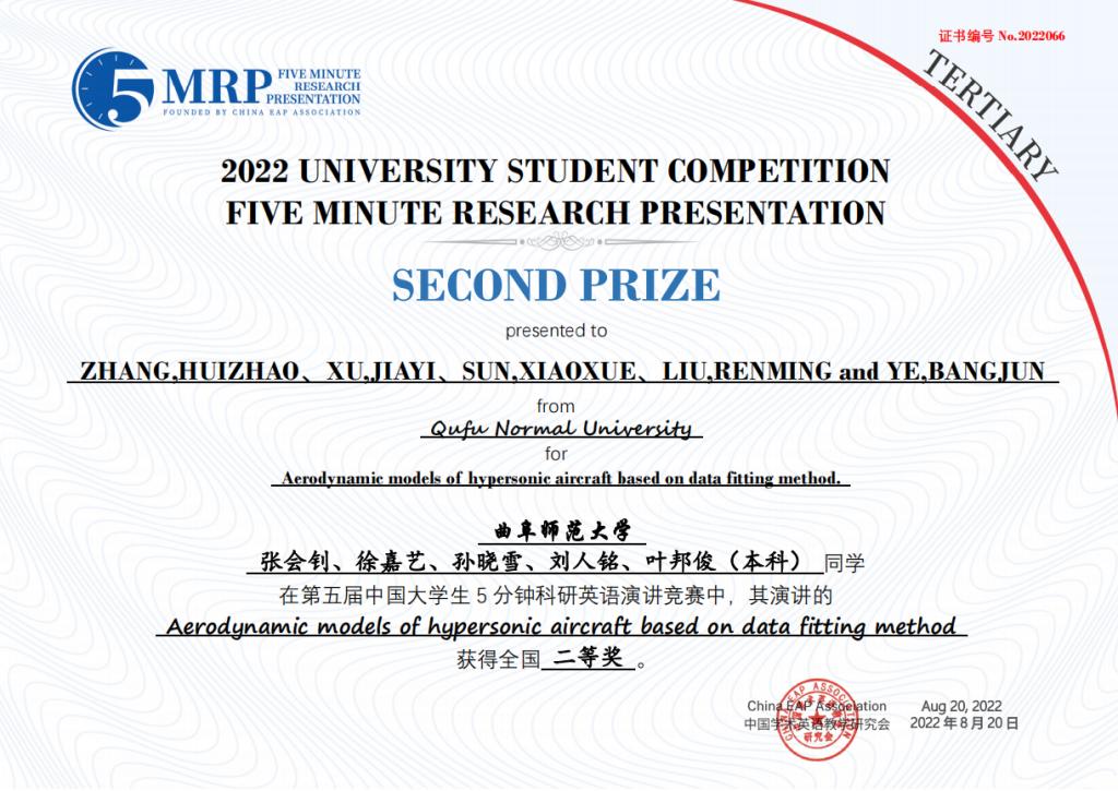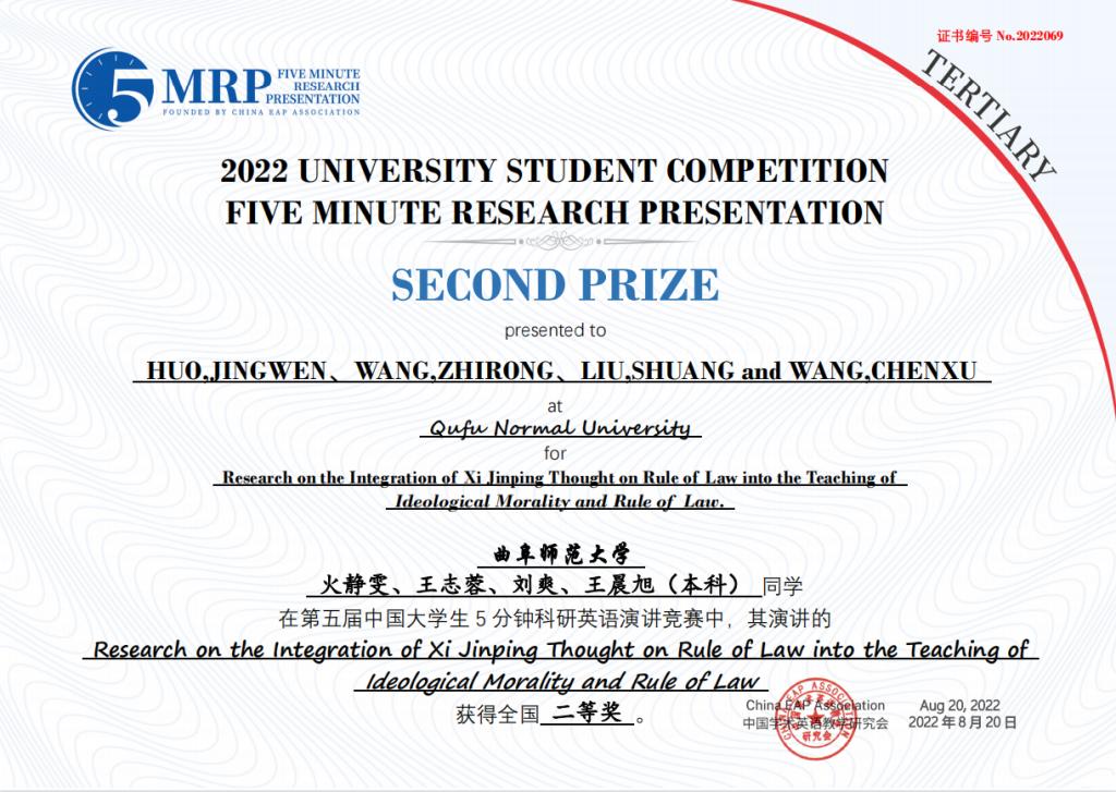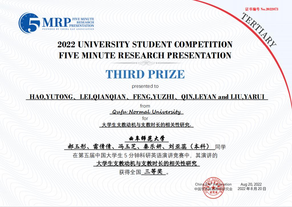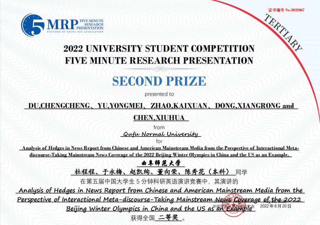 附2:第五届中国大学生五分钟科研英语演讲大赛蜜桃传媒 获奖团队获奖证书
