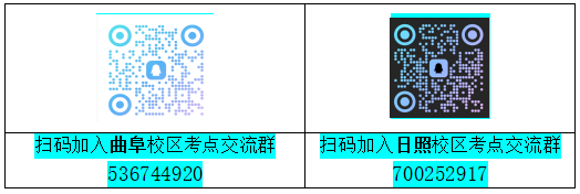 考点交流:为及时获取考试相关通知,报名后请务必加入曲阜/日照国才交流QQ群。