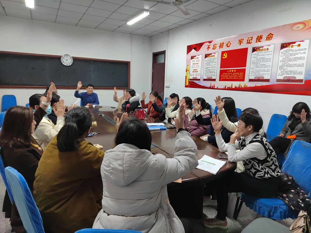 大会最后开展年终评优活动。此次评优活动,按照全体党员人数30%的比例,共评选出9名优秀工作者及标兵。全体党员对推荐候选人进行举手表决,均全票通过。评选王显明同志为党建管理标兵;弭宁、杜明真同志为优秀党务工作者;孙铭悦、李健、毛世花、万敏同志为“学习强国”学习标兵;孙海珊、梁景会同志为支教标兵。党员同志们对他们表示热烈祝贺。刘成干表示,要始终向标兵看齐,时刻牢记初心和使命,争当先进,发挥先锋模范作用。