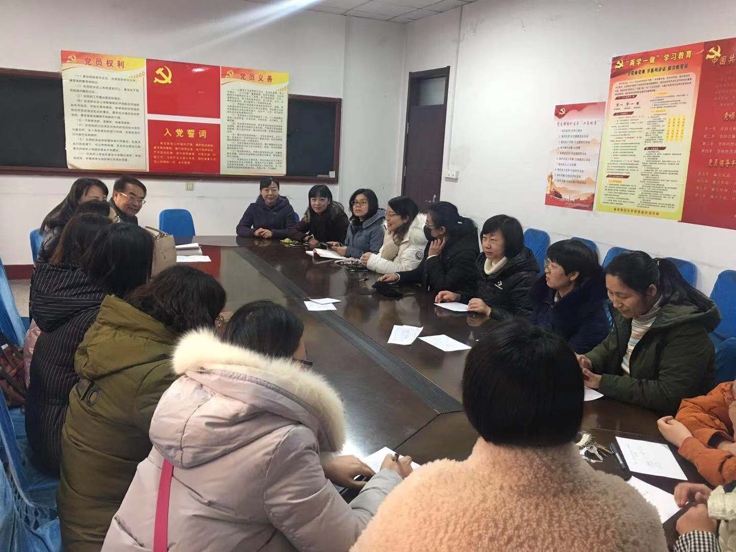 随后刘成干总结了本年度党支部开展的各项活动、取得的成绩及存在的不足。本年度我支部通过各种形式开展专题教育活动,严格党内组织生活,落实“三会一课”等制度,增强了党支部的凝聚力和战斗力。他强调,今后要继续加强党员队伍建设,吸收思想上和行动上积极向党组织靠拢的同事加入中国共产党。