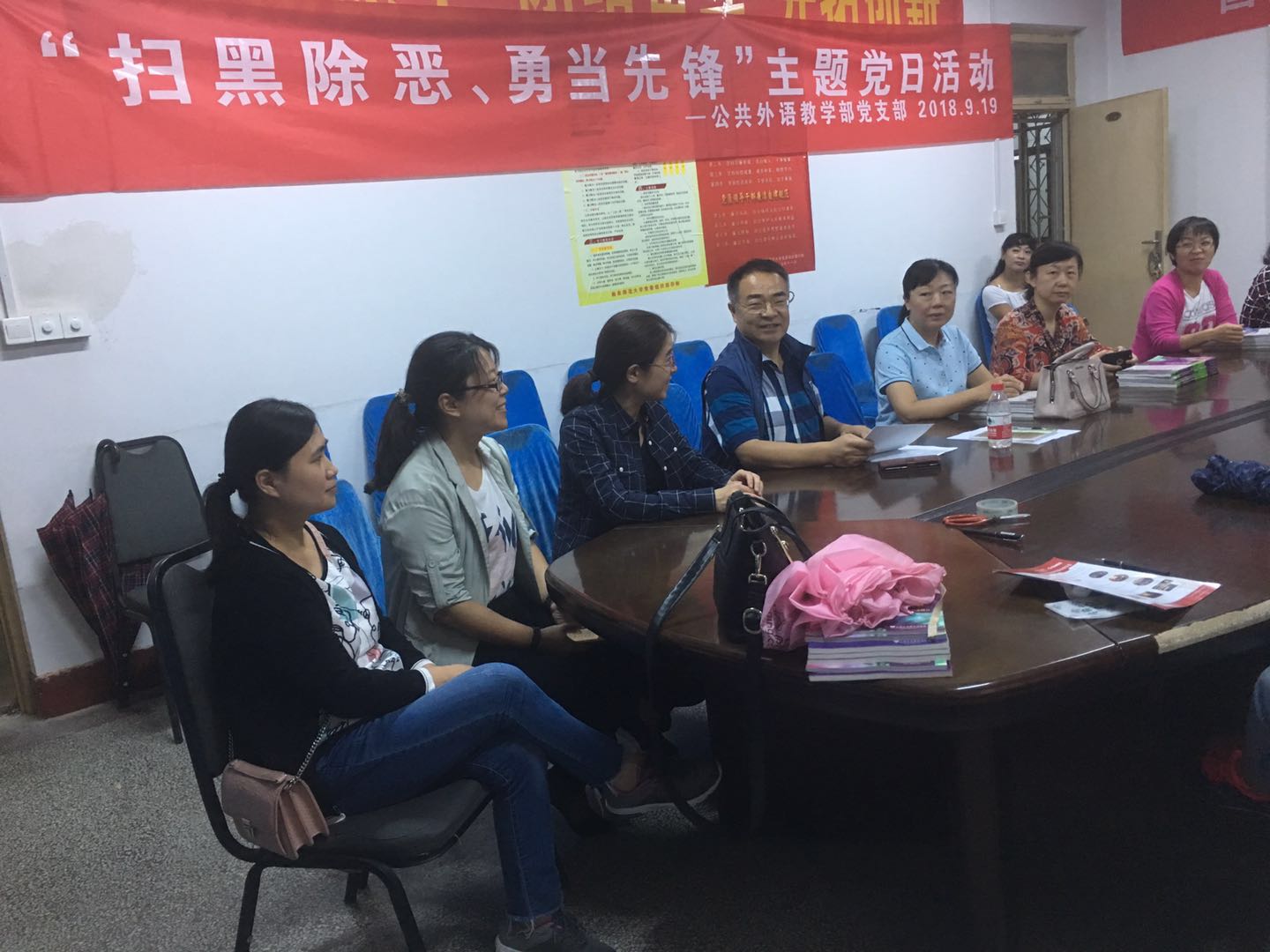 曲阜校区党支部开展“扫黑除恶,弘扬正气”主题党日活动。活动由党支部副书记刘成干同志主持。