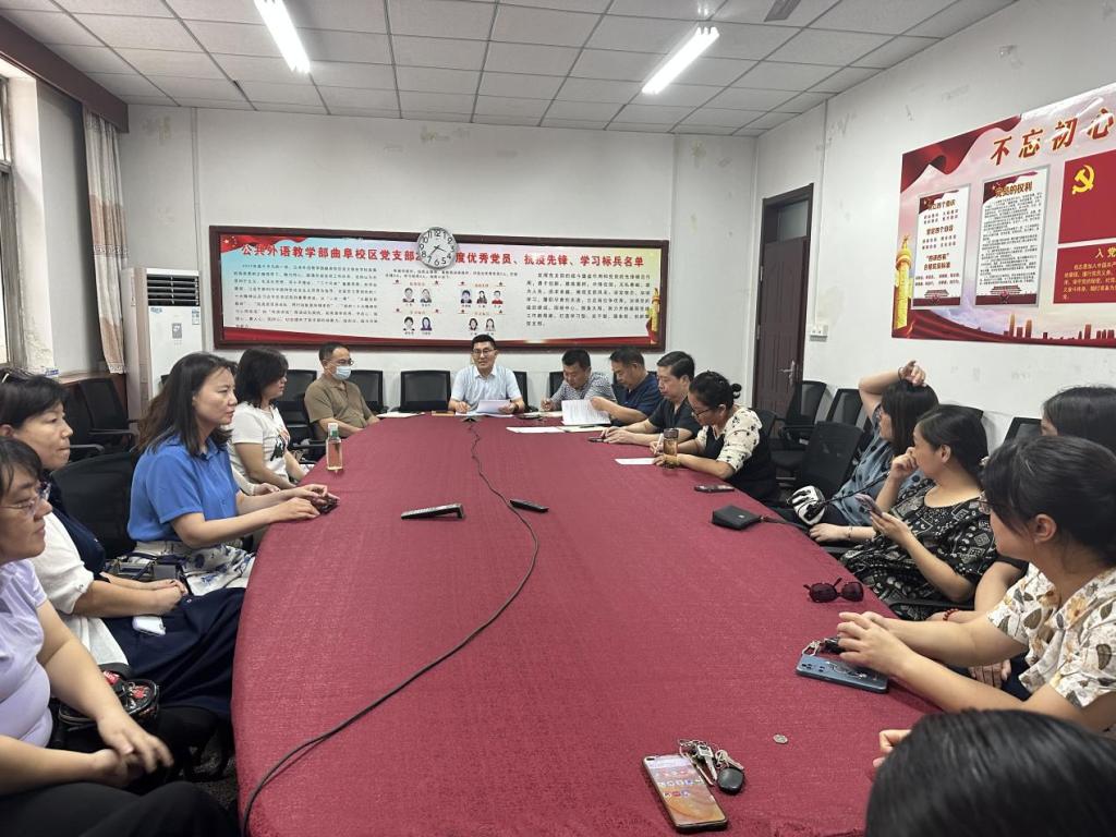 911下午曲阜校区党支部召开全体党员大会,专题学习九月份理论材料会议由党支部书记王福祥主持,全体党员参加会议。
