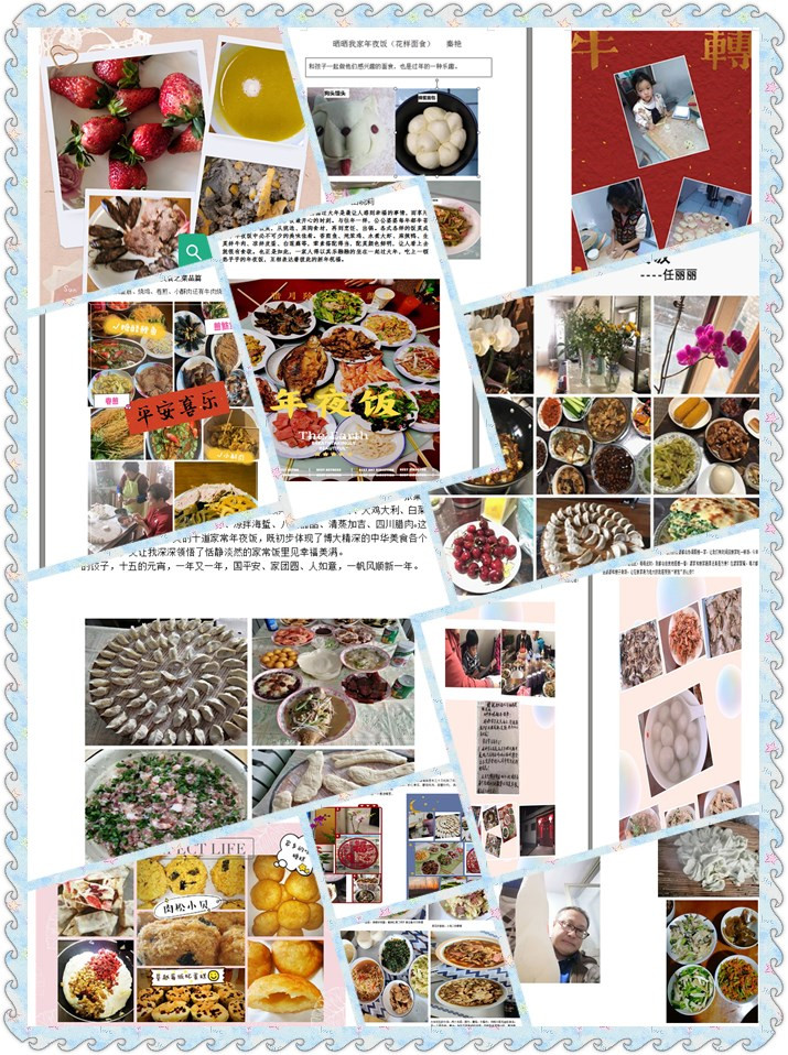 在征稿期间,老师们纷纷晒出了自家不一样的年夜饭。从地域特色来看,有的年夜饭具有浓浓胶东、临沂风味,有的则是无辣不欢、无肉不欢的“多彩颜色”宴席,更多的则是兼顾济宁风味与老家风味;从内容上来看,有的老师注重对一家人厨艺的展现,有的老师则是通过年夜饭来记录一家人春节齐聚一堂时欢乐、喜庆、热闹的氛围;从配图文字看,是对过去一年的生活回顾,而更多的是对新一年的期待和展望。各种美食,吃的不只是色香味,还有思念、团聚、新年祝福。