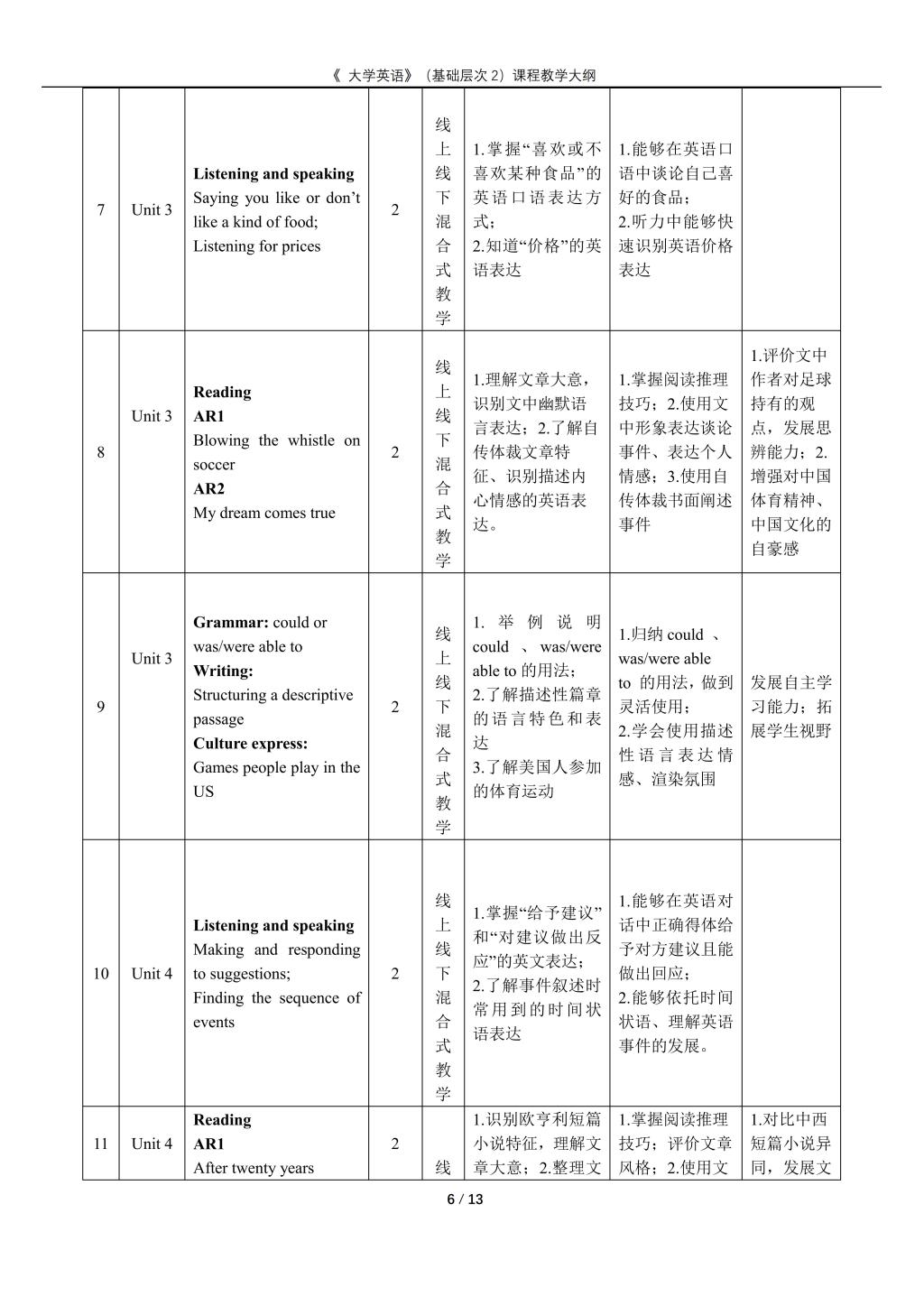 大学英语(普通类基础层次2)课程教学大纲(2022版)