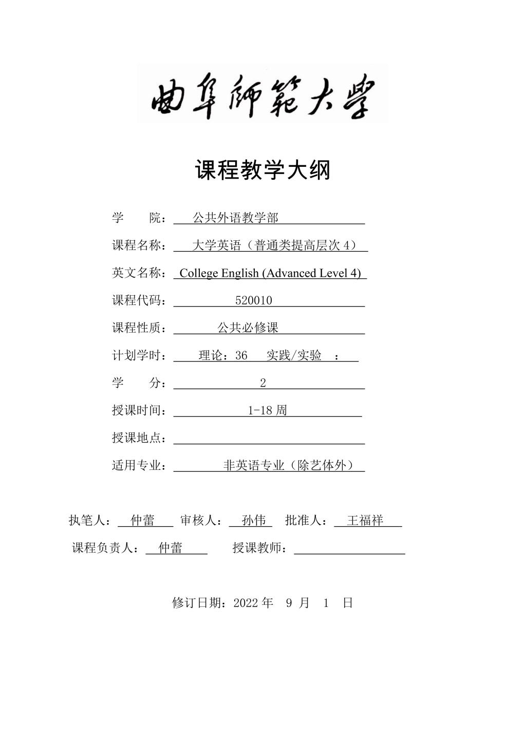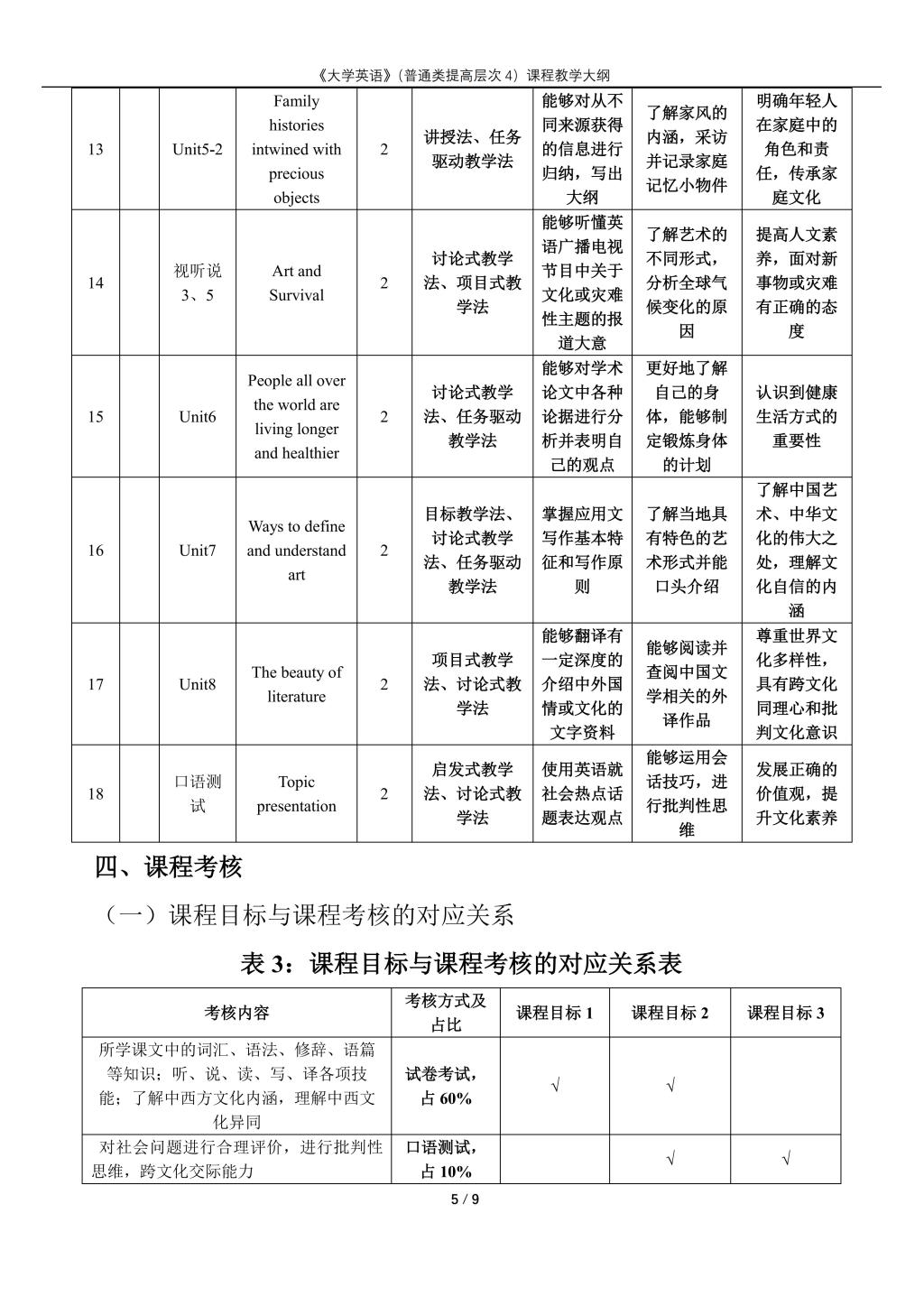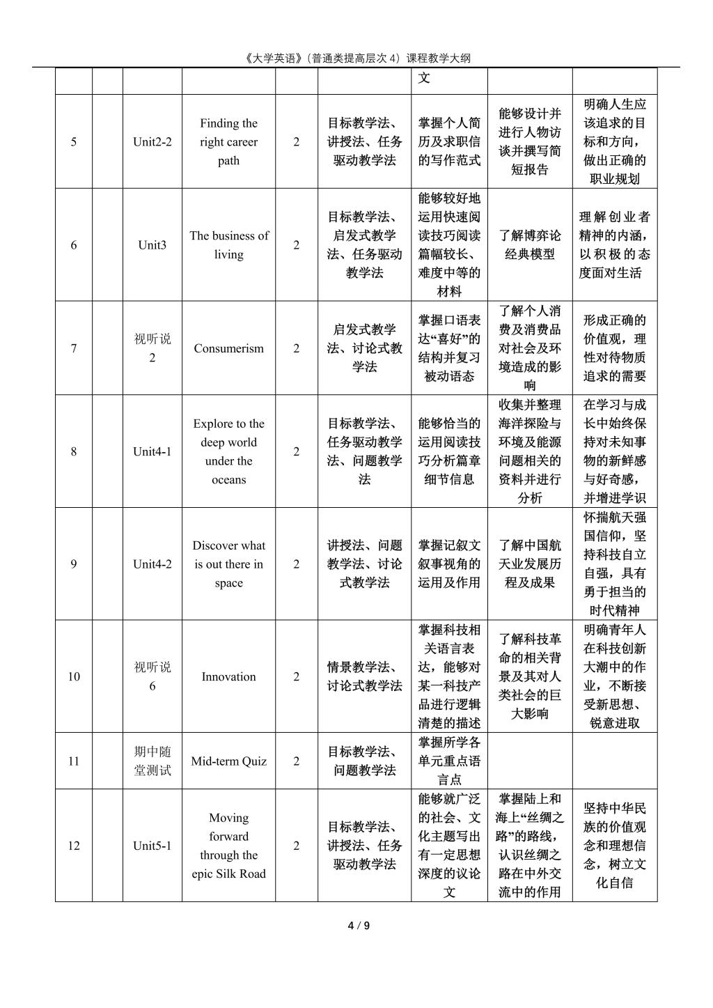 大学英语(普通类提高层次4)课程教学大纲(2022版)