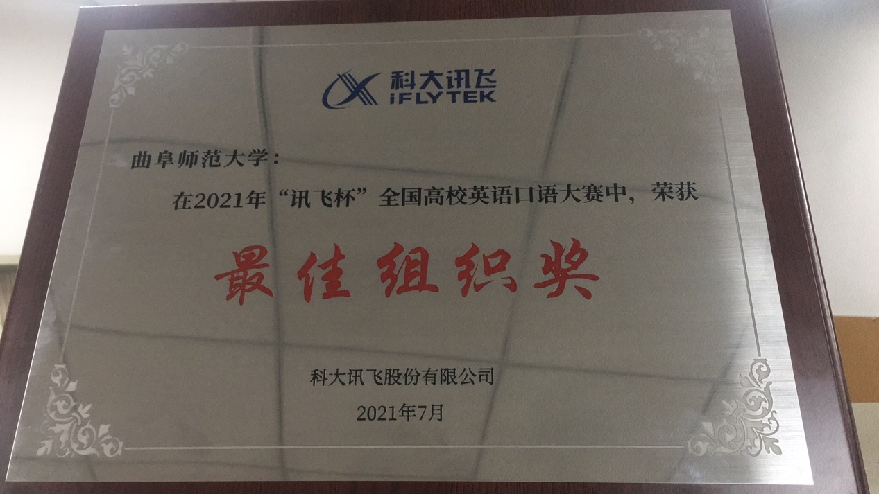 积极筹备,发动学生参赛,取得了山东赛区比赛规模和参赛人数和获奖人数第一名的好成绩。本次大赛中,山东省口语大赛开通赛事权限高校51家,有比赛数据的43家,17000名同学参与,约9000人完成赛事,我校921名同学参加,89名同学获奖,其中特等奖1名、一等奖1名、二等奖4名、三等奖17名,优秀奖41名,相应教师获得“优秀指导教师”奖。蜜桃传媒
