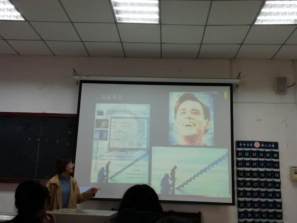 同学们踊跃参与,本次比赛共收到约50份海报作品。初赛经过选手互评和投票的方式进行了选拔,共有14份作品进入决赛。每位参赛选手通过ppt进一步讲解自己的海报设计创意以及对电影的理解和感悟,在用英语诠释电影的内涵中切实感受着不同文化的特点与魅力。本次比赛修滢婷同学以手绘作品《Black Swan》获得一等奖。最后,评委本着认真负责的态度对选手们的表现进行了点评,鼓励同学们保持学习英语的热情,共同分享优秀的英文影视作品。