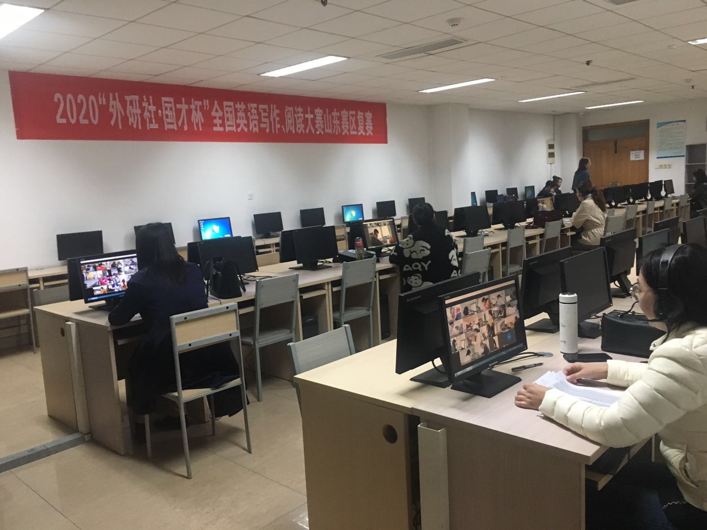 承办,大赛采用了选手线上比赛,评委线下评判的“云”模式。来自全省本科院校的144名写作、143名阅读以及145名演讲精英齐聚云端,激烈角逐。37位评委参与大赛的监考、评判工作。公共外语部在前期充分论证、精心准备的基础上,圆满举办了本次大赛。
