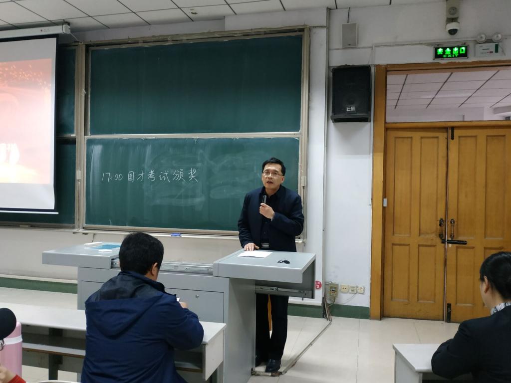 作为考试组织单位,北京外国语大学外语教学与研究出版社区域经理李洪旺宣布了2019年5月国才考试报名工作正式启动,简单介绍了本赛季考试的一些变化和注意事项;随后宣读了获得国才优秀、良好、合格的同学名单。李洪旺经理宣布颁奖开始。